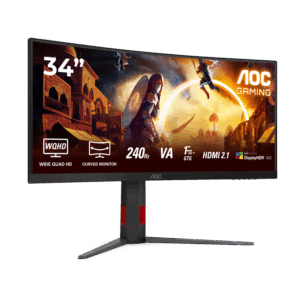 MONITOR AOC CU34G4Z 34” Curved Fast VA, WQHD 3440×1440, 240Hz, 1500R, 1ms, DisplayHDR 400, Adaptive Sync, 2x HDMI 2.1, 1x DP 1.4, USB hub, Ergonomic
