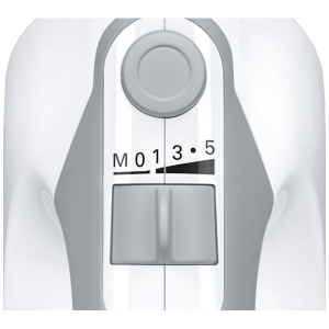 Ručni mikser sa posudom, snaga motora 450 W, tih i snažan, 5 postavki brzine + turbo, odlično rukovanje s velikim, lako dostupnim gumbima i ergonomskim oblikom, odvojena tipka za izbacivanje metlica, stalak za miješanje, kapacitet posude 500 g brašna + dodaci (tijesto za kruh ili pizzu), prostor za namotavanje kabla, 2 turbo metlice za miješanje, 2 stabilne metlice za gnječenje