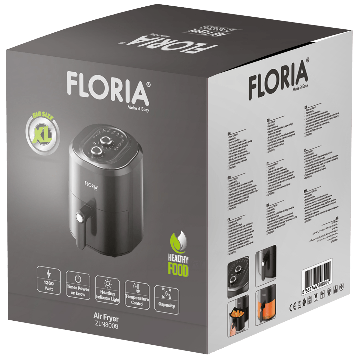 Floria Air Fryer, ZLN8009 friteza na vrući zrak ispeći će vašu hranu s maksimalnim okusom koristeći minimalno ili bez ulja.