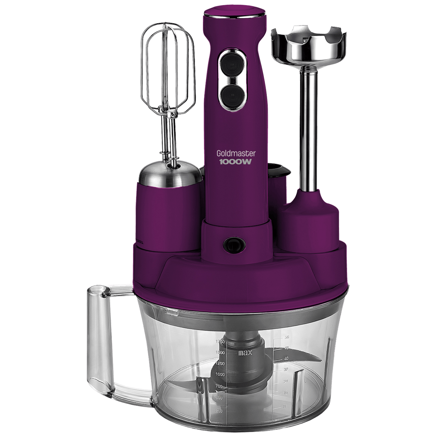 Štapni mikser sa posudom, Multi Set, 5u1, snaga motora 1000 W, kapacitet mjerne posude 1.5 lit., funkcije: blender, sjeckalica, mikser, rezalica, drobilica, tipka za regulaciju brzine normal i turbo brzina, štap blendera od nehrđajućeg čelika, oštrice od nehrđajućeg čelika, tihi rad, ergonomska ručka, potiskivač hrane, kompaktan dizajn za praktično skladištenje