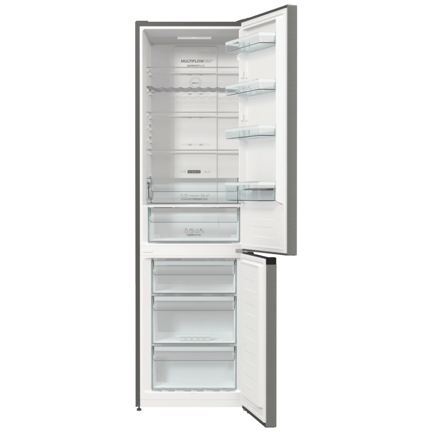 Samostojeći kombinovani frižider / zamrzivač, položaj zamrzivača dole, ukupna zapremina 331 lit., obim rashladnog dijela 235 lit., obim zamrzivača 96 lit., kapacitet zamrzavanja 9kg / 24h, vrijeme čuvanja u slučaju nestanka el. energije 10 h LED display, elektronsko upravljanje, SensoTech prekidač, alarm za otvorena vrata, zvučni i svjetlosni bijeli signal, Zamrzivač sa podesivom temperaturom, automatsko odmrzavanje, lijevo/desno otvaranje vrata Oprema frižiderskog dijela: Držač za boce, 1 polica za flaše sa fiksiranim držačem, 3 police na vratima, LED osvjetljenje na stropu, 3 podesive police, 5 staklenih polica, Umeci za jaja 2/6, Convert FreshZone Prostor za zamrzavanje sa 3 ladice IonAir s Multiflow 360°, AdaptTech – Pametni sistem pamćenja, CrispZone s HumidityControl: velika ladica za povrće sa regulacijom vlažnosti, Prekidač za brzo/duboko zamrzavanje, NoFrost Plus, Multiflow 360°: Multi 3D upuhivanje zraka, Štedljivi program EcoMode 1 kompresor, rashladno sredstvo R600a, nivo buke 38 dB(A) Dimenzije 600 x 2000 x 592 mm, težina 61 kg. Energetski razred E