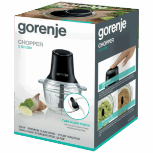 Sjeckalica sa staklenom posudom, S501GBK Dvostruka oštrica s dvije tačke za brže sjeckanje i mljevenje. Vrhunska staklena posuda omogućava lako i stabilno sjeckanje. Sadržaj se može poslužiti i direktno iz posude za sjeckanje. Visokokvalitetna sjeckalica idealan je pomoćnik pri izradi jela različitih tekstura. Koristite ga za brzo sjeckanje većih komada povrća ili voća, mljevenje orašastih plodova ili za izradu kremastog pirea. Sjeckalica se može koristiti za sjeckanje voća, povrća, začinskog bilja ili orašastih plodova. Jednostavno pritisnite bazu uređaja prema dolje za početak sjeckanja. Pulsna funkcija omogućuje sjeckanje u intervalima, ostavljajući vam potpunu kontrolu nad radom. • Materijal kućišta – Plastika i metal • Materijal noža – Nehrđajući čelik sus301 • Učinkovit 4-kraki nož • Snaga motora 500 W • Volumen posude sjeckalice 1 litar • Pranje nastavaka u perilici posuđa za brzo i učinkovito čišćenje • Mjerna skala na posudi za savršeno tačno doziranje • Dužina priključnog kabela 1 met. • Dimenzije 102 x 165 x 102 mm, težina 1.3 kg.
