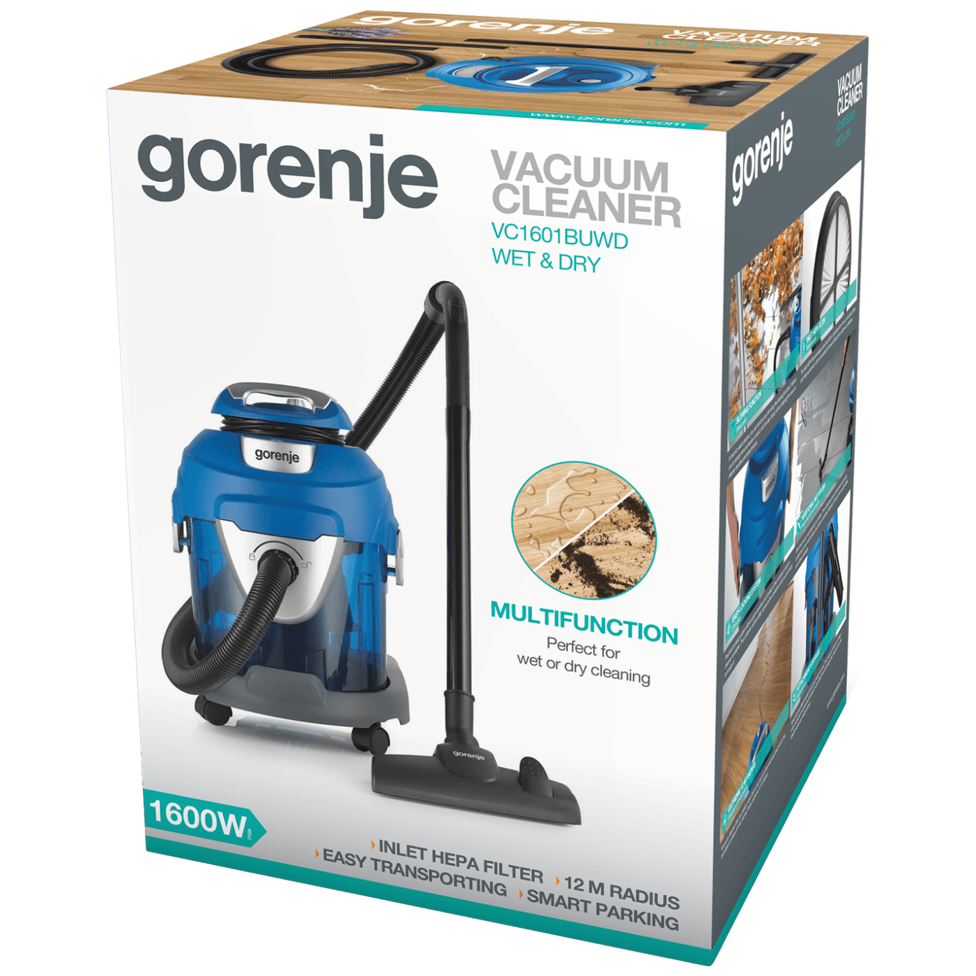 Usisavač za mokro i suho usisavanje, snaga motora 1600 W, usisna snaga 300 W, zapremina posude za prašinu 10 lit., zapremina vrećice 5 lit., protok zraka 36 l/s, promjer cijevi 32 mm, dužina cijevi 86 cm, HEPA filtracija, upravljanje gimbom, SoftStart paljenje motora, univerzalna četka, 4 plastična točka