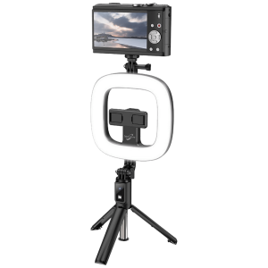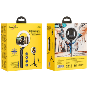 LV03 Plus Showfull, stalak za prijenos uživo s svjetlom za mobilne telefone od 4.7 – 6.5 inča, Bluetooth daljinski upravljač 1. Materijal ABS + aluminijska legura. Težina: 304g.