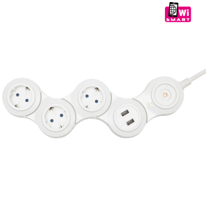 Produžni kabel s prekidačem, SMART, ugrađen WiFi, 3 uzemljenjih utičnica + USB utičnica, H05VV-F 3G, presjek kabla 3 x 1,5 mm², dužina kabla 1.4 met., osvjetljen glavni prekidač, 250 V AC / 16 A / 3500 W, 2 x USB 5 V DC max 2.4 A ( total ).