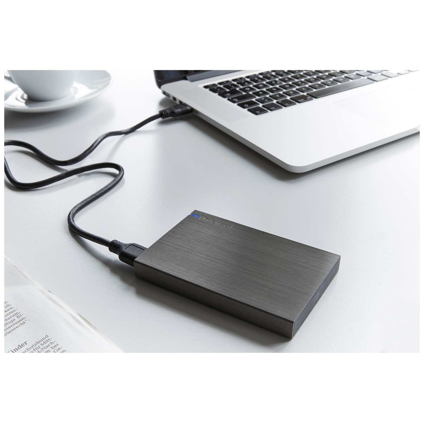 Eksterni Hard Disk 2.5”, kapacitet 1TB, interface USB 3.0, max. brzina čitanja 85,00 MB/s, max. brzina pisanja 75,00 MB/s, 5400 RPM / 8 MB cache, indikator, materijal kućišta aluminij, boja crna