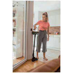 Kärcher VC 4 Cordless myHome (1.198-630.0) Kärcher VC 4 Cordless myHome je bežični usisavač dizajniran za jednostavno i učinkovito čišćenje manjih prostora. Njegov lagani dizajn i snažna baterija omogućuju fleksibilnost i udobnost pri čišćenju svih vrsta tvrdih podova i tepiha. Ovaj usisavač opremljen je snažnom 21,6 V litij-ionskom baterijom koja omogućava do 30 minuta rada u normalnom načinu rada, dok u boost načinu rada traje do 18 minuta. Vrijeme punjenja baterije je približno 345 minuta. Sustav filtracije bez vrećica uključuje 3-stupanjski filtar: ciklonski, usisni i pjenasti filtar, što omogućava jednostavno pražnjenje spremnika za prašinu jednim klikom. Spremnik za prašinu ima kapacitet od 650 ml. Usisavač dolazi s različitim nastavcima: univerzalna podna mlaznica, mlaznica za pukotine, mlaznica za tapecirani namještaj i mekana četka u jednom te plastična usisna cijev. Također je uključena i mala zidna montaža za praktično spremanje uređaja. S težinom od 2,4 kg bez dodataka i dimenzijama 230 x 236 x 1115 mm, VC 4 Cordless myHome je lagan i kompaktan, što omogućava jednostavno manevriranje i pohranu. Specifikacije • Napajanje: Bežično, litij-ionska baterija 21,6 V / 2,5 Ah • Vrijeme rada: Normalni način: do 30 minuta; Boost način: do 18 minuta • Vrijeme punjenja: Približno 345 minuta • Sustav filtracije: 3-stupanjski (ciklonski, usisni, pjenasti) • Kapacitet spremnika za prašinu: 650 ml • Težina (bez dodataka): 2,4 kg • Dimenzije (L x W x H): 230 x 236 x 1115 mm • Uključeni dodaci: Univerzalna podna mlaznica, mlaznica za pukotine, mlaznica za tapecirani namještaj i mekana četka u jednom, plastična usisna cijev, mala zidna montaža Kärcher VC 4 Cordless myHome je idealan izbor za korisnike koji traže lagan i učinkovit bežični usisavač za manje prostore. Njegov snažan rad, jednostavno održavanje i praktični dodaci čine ga izvrsnim rješenjem za svakodnevno čišćenje.