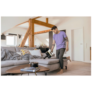 Maksimalna sloboda kretanja i maksimalna udobnost: VC 4 Cordless myHome usisivač s vremenom rada do 30 minuta štedi korisnika od potrebe da vuku veliku jedinicu i idealan je za mala domaćinstva. Njegove mnoge inteligentne karakteristike čine usisavanje užitkom: pražnjenje posude za prašinu jednim klikom, funkcija pojačanja, tihi rad, ergonomski dizajn i aktivna podna mlaznica za pouzdano usisavanje prljavštine na tvrdim podovima i tepisima. Praktična funkcija zaključavanja napajanja uklanja potrebu za stalnim držanjem dugmeta za napajanje. Njegov pažljivo promišljen dizajn omogućava čišćenje čak i onih teško dostupnih područja, kao što su duž sofe ili ispod namještaja. Pametni dodaci kao što je alat za čišćenje filtera osiguravaju dugovječnost filtera. Drugi filter za ulaz zraka na VC 4 Cordless myHome usisivaču olakšava korištenje alata za čišćenje filtera. Snažna baterija od 21,6 V, savršeno usklađena s aktivnom podnom mlaznicom. Optimizirano vrijeme rada od 30 minuta u normalnom načinu rada. Dovoljno vremena za čišćenje malih domaćinstava. Opcioni režim pojačanja. Do 18 minuta rada na najvišem nivou snage. Snaga se može brzo i jednostavno podesiti kako bi odgovarala određenoj primjeni. Jednostavno pražnjenje filtera jednim klikom. Uključuje Power Lock za lakše rukovanje. – Akumulatorski štapni usisivač, bez vrećice – Nivo buke (dB(A)) < 78 – Kapacitet spremnika za prašinu 650 ml – Litijum-jonska baterija, 21.6V – Vrijeme rada po punjenju baterije (min) cca. 30 – Vrijeme punjenja baterije sa standardnim punjačem (min) 345 – Dimenzije (D x Š x V) 230 x 236 x 1115 mm – Težina bez pribora 2.4 kg.