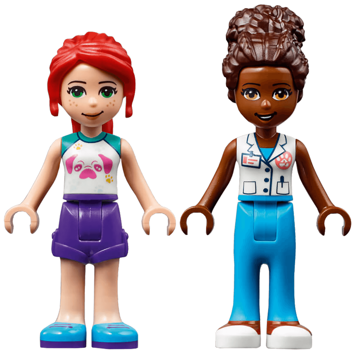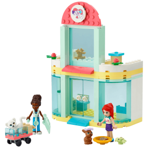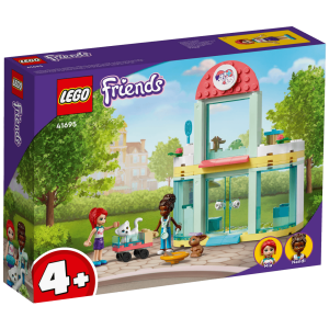 Dobro došli u kliniku za ljubimce u Heartlakeu. Mia je dovela mačka Dua s ozlijeđenom nogom. Pomozi joj da ga dogura do klinike u slatkim kolicima. Stavi mačka na stol da ga veterinarka pregleda. Daj Duu lijekove i stavi ga u krevet na spavanje. Kada se odmori, Duo će se osjećati mnogo bolje. Odnesi mačka na kat na kupanje, počešljaj mu dlaku i pusti ga da se igra na penjalici. Duo je pokazao kako je hrabar! • Šareni model veterinarske klinike uz koji djeca uče slagati – LEGO® Friends Veterinarska klinika (41695) daje mališanima od 4 godine i starijima priliku da pokažu ljubav prema životinjama, a pritom razviju vještine slaganja. • Mnogo pokretača igre – sadrži dvije lutkice, uključujući Miju iz serije LEGO® Friends, te figure mačke, kornjače i zeca i dječji veterinarski pribor koji će djecu potaknuti na sate igre i brige o životinjama. • Dva sprata zabave – djeca mogu dovesti ljubimca na pregled ili glumiti veterinarku koja radi rendgen. Gore je prostor za uređivanje, u kojem se ljubimci mogu igrati, a vlasnici ih tetošiti, s kadom i penjalicom. • Poslastica za djecu od 4 godine i stariju – komplet može biti kreativna nagrada za male ljubitelje životinja koji zaslužuju nagradu i poklon za rođendan za djecu koja vole slaganje i figure životinja. • Kreativnost u svako doba – komplet iz serije LEGO® Friends praktičnih je dimenzija: visok je više od 16 cm, a širok 13 cm, pa ga možete držati vani, spreman za igru i brigu o životinjama. • Jednostavno slaganje – kompleti iz serije 4+ sadrže početničke kockice za brzi početak igre. Jednostavne slikovito uputstvo znači da nema nikakve prepreke slaganju, čak ni za djecu koja tek uče čitati. • Učenje kroz igru – igračke iz serije 4+ dizajnirane su tako da kod kuće pomažu u razvoju vještina za školu, komunikacije, koncentracije i izražavanja. • Brižno društvo – može se kombinovati s kompletom LEGO® Friends Kola hitne pomoći za ljubimce (41694) za bogatiju igru i stvaranje svijeta igre u kojem prijatelji zajedno brinu o životinjama. • Uvijek funkcioniše– još od 1958. LEGO® kockice ispunjavaju najviše standarde industrije kako bi bile skladne i kompatibilne te kako bi se mogle jednostavno spajati i razdvajati svaki put. • Možete biti mirni – LEGO® kockice i dijelovi testiraju se do najveće mjere kako bismo bili sigurni da kreativni poklon ispunjava stroge standarde za sigurnost.