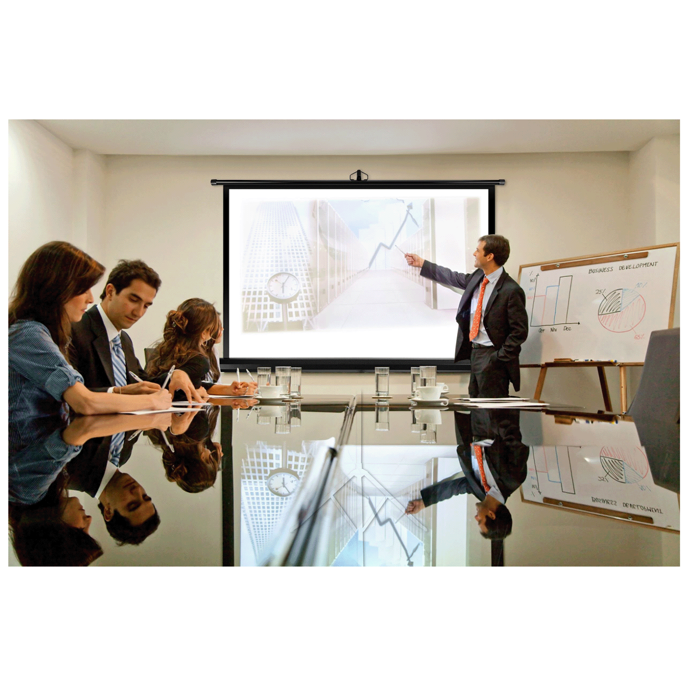 Platno za projektor sa stalkom – Veličina projekcije do 60” Držač projektora radi bilo gdje — kod kuće, u kancelariji ili u školi (radna površina 116 × 87 cm). – Lako podešavanje i brza montaža Uvijek možete podesiti postavke ekrana prema potrebi! – Uključen stabilan stativ Omogućava vam da postavite ekran na maksimalnu visinu od 119 cm. – Odaberite platno za projektor sa stativom Overmax Tripod Screen i uživajte u visokom kvalitetu slike! Bijeli mat Overmax ekran jamči sliku visokog kvaliteta sa projektora. Standard 1.0 izvođenje naglašava jasnoću kroz realističnu reprodukciju boja. Ekran od 60” pogodan je za bilo gdje — kod kuće, u kancelariji ili školi, kao i za emisije na otvorenom. – Intuitivan i praktičan rad Crni tronožac savršeno stabilizira cjelinu, a njegova visina se može podesiti po potrebi (maks. 119 cm). Lagan i kompaktan dizajn pruža visok osjećaj mobilnosti. Overmax Tripod Screen se može brzo sklopiti i ponijeti bilo gdje. Štaviše, automatsko uvlačenje ekrana sa oprugom omogućava vam da brzo i efikasno završite svoje predavanje ili projekciju filma. • Dijagonala ekrana dijagonala 60” • Radna površina 116 x 87 cm • Stativ • Podešavanje visine ekrana • Podešavanje visine stativa • Razmak nogu 80 cm • Sklopivi dizajn, automatski • Kaseta za zaštitu ekrana