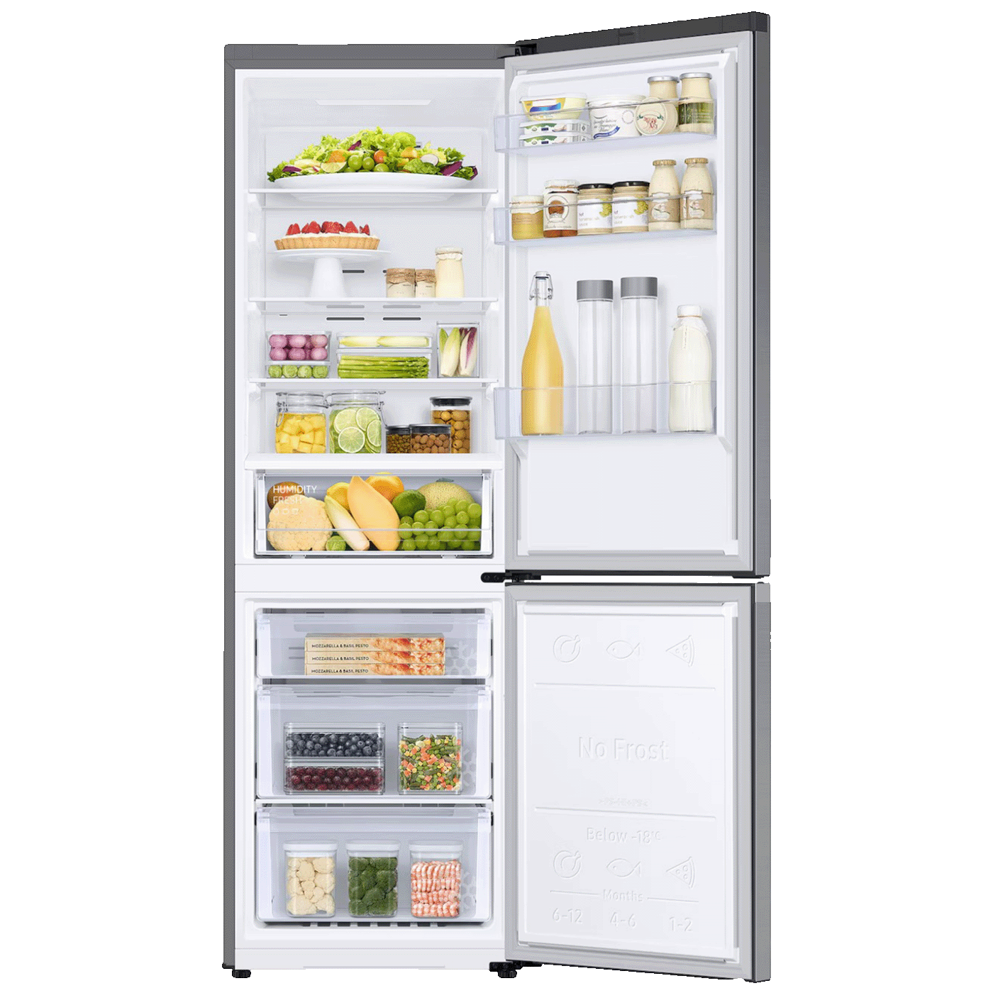 Samsung RB34C600ES9/EK kombinovani frižider sa zamrzivačem, 344 L, SpaceMax Samsung RB34C600ES9/EK je moderan kombinovani frižider sa zamrzivačem koji nudi veliki kapacitet i napredne tehnologije za optimalno čuvanje hrane. Zahvaljujući SpaceMax tehnologiji, zidovi uređaja su tanji, što omogućava veći unutrašnji prostor bez povećanja vanjskih dimenzija. Ukupni kapacitet od 344 litra pruža dovoljno mjesta za skladištenje namirnica za cijelu porodicu. Frižider koristi All-Around Cooling sistem koji ravnomjerno raspoređuje hladan zrak kroz cijeli prostor, održavajući stabilnu temperaturu na svakoj polici. No Frost tehnologija sprječava stvaranje leda i olakšava održavanje uređaja. Digitalni inverter kompresor automatski prilagođava brzinu rada kako bi osigurao energetsku efikasnost, tiši rad i dug vijek trajanja. Elegantni dizajn u srebrnoj boji uklapa se u različite stilove kuhinje i daje moderan izgled prostoru. • Tip uređaja: kombinovani frižider sa donjim zamrzivačem • Model: Samsung RB34C600ES9/EK • Ukupni kapacitet: 344 L • Kapacitet frižidera: 230 L • Kapacitet zamrzivača: 114 L • Tehnologija hlađenja: All-Around Cooling • Sistem bez leda: No Frost • Kompresor: Digital Inverter • Tehnologija prostora: SpaceMax • Energetska klasa: E • Boja: srebrna (Silver) • Tip upravljanja: elektronsko upravljanje • Dimenzije (V x Š x D): 185,3 x 59,5 x 65,8 cm Zaključak Samsung RB34C600ES9/EK je prostran i energetski efikasan frižider koji kombinira veliki kapacitet, napredne tehnologije hlađenja i moderan dizajn. Zahvaljujući SpaceMax tehnologiji, No Frost sistemu i digitalnom inverter kompresoru, predstavlja praktičan i pouzdan izbor za savremenu kuhinju.
