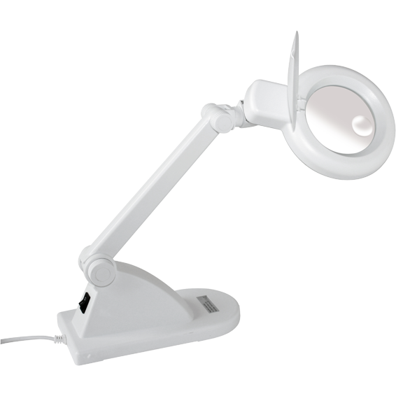 Stolna lampa sa lupom, stakleno sočivo 90mm, uvećanje 3 X , dodatno soćivo 12 X, prstenasta fluo cijev 115mm/12W, zaštitni poklopac, priključni kabel 1,5met, napajanje 230V / 50HZ / 12W.