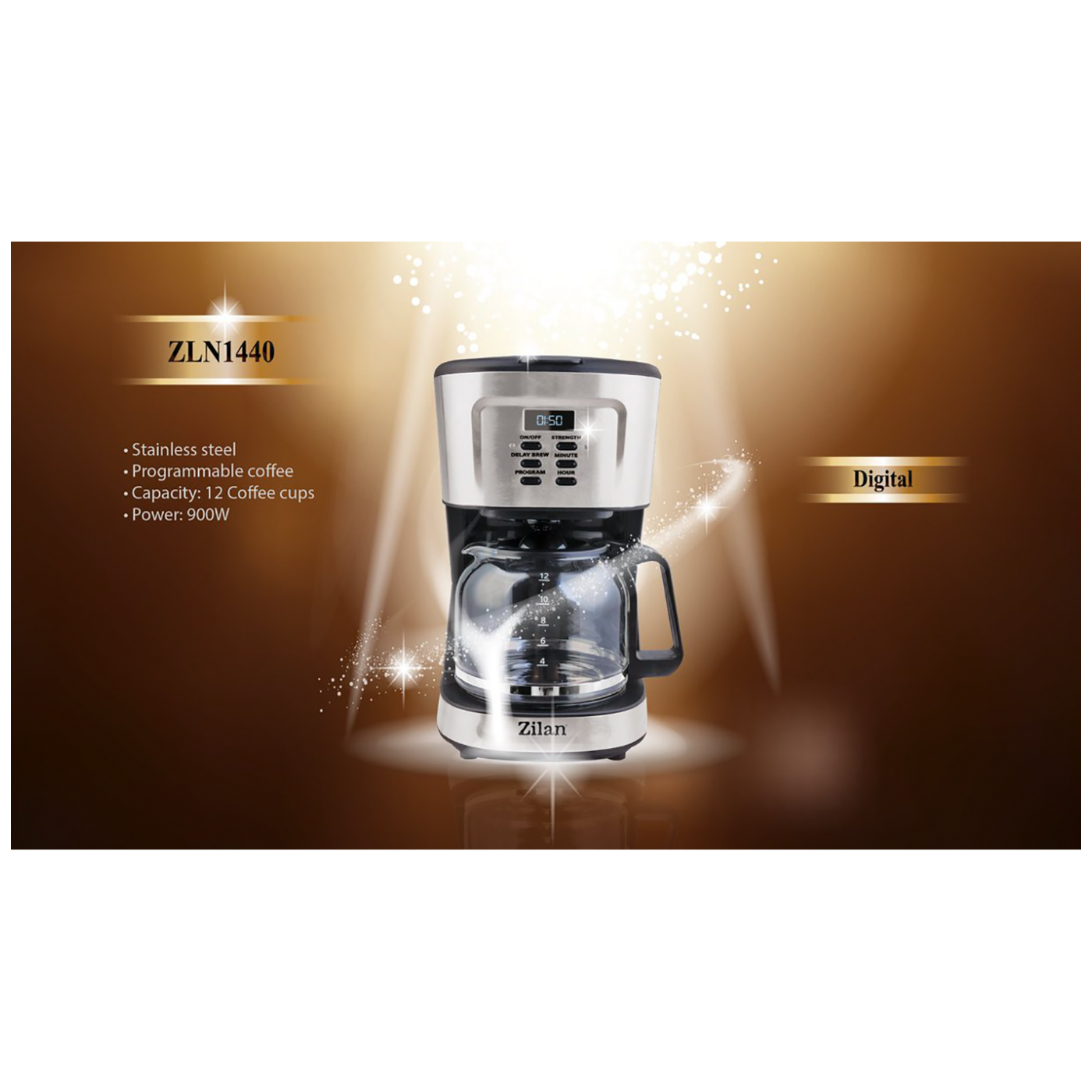 Aparat za kavu, priključna snaga 900 W, staklena posuda kaciteta za 12 šalica kave, tank za vodu kapaciteta 1.5 lit, indikator nivoa vode, kućište od nehrđajućeg čelika, dimenzije 280 x 360 x 220 mm