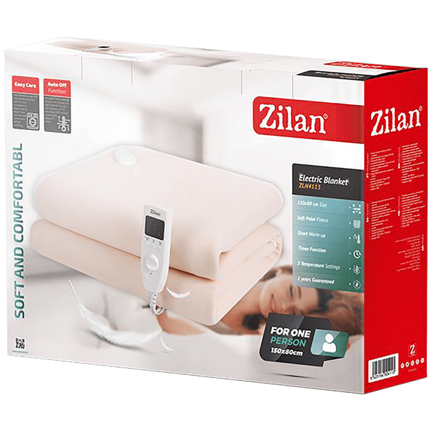 Električna deka, stalna i ravnomjerno raspoređena temperatura, kratko zagrijavanje, mekani materijal, 5 postavki temperature, funkcija timer 1 – 10 h, osigurač struje i temperature, zaštita od pregrijavanja, odvojivi priključak + VDE utikač, perivo, snaga 60 W, dimenzije 150 x 80 cm