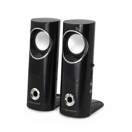 High-quality stereo speakers for notebooks and desktops. They provide clear and natural sound quality. The elegant design makes them fit well at your desk with LCD monitor and other accessories. They work well with all computer units with speaker and USB outputs. They are equipped with built-in volume control and headphone output. High-quality materials used for their manufacture protect against static electricity and electromagnetic interference.